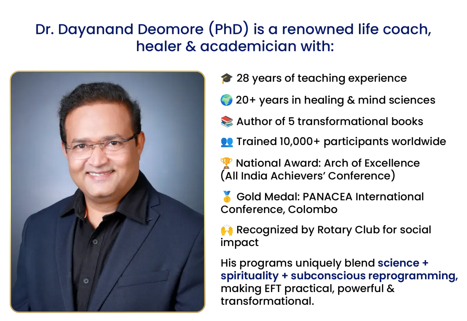 About Dr. Dayanand (PhD) (Credibility Section)